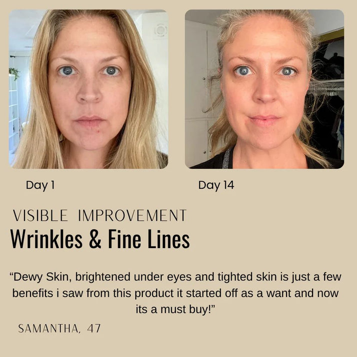 Experienced visibly tighter skin after just a few weeks of regular use of our combo!
